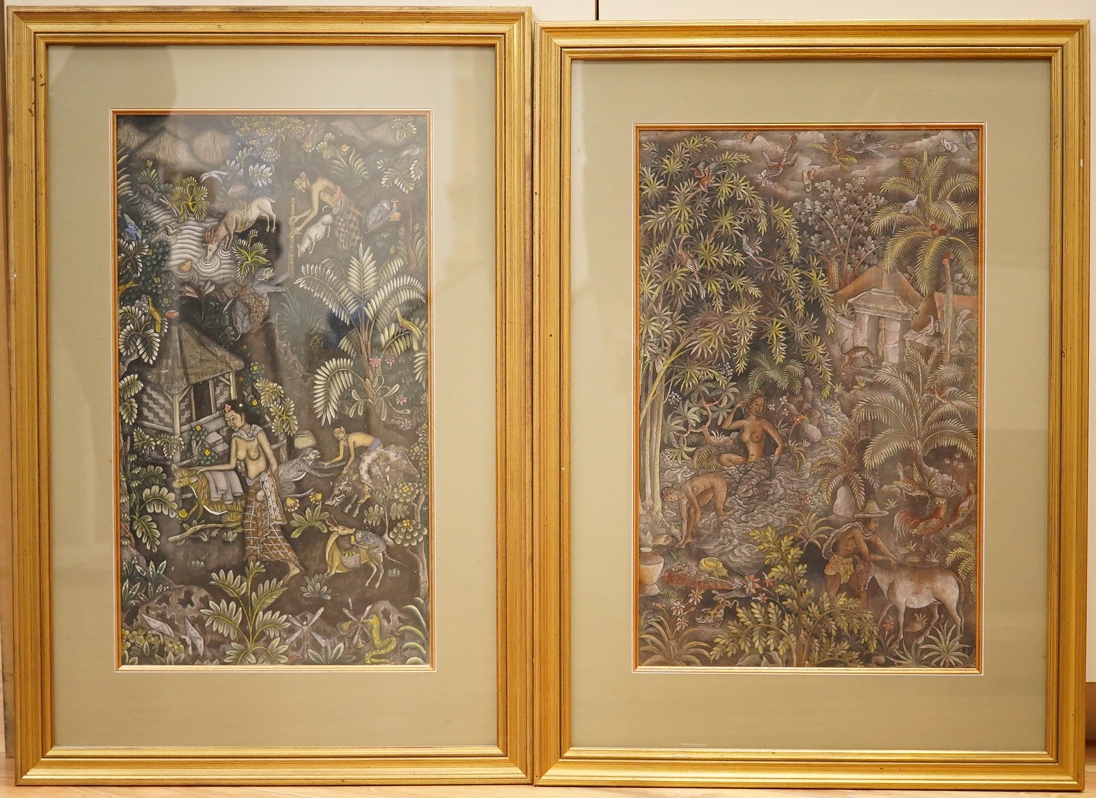 Lot 702 , Indonesian school, 20th century, village scenes, pair of watercolours, 44 x 27cm