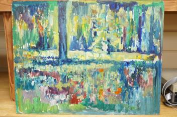 James Isherwood (1917-1989), woodland scene, unsigned, oil on board, unframed, 35 x 45cm