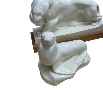 Lot 3117 , John Skeaping (1901-1980), for Wedgwood, an Art Deco figure of a tiger and prey, mounted on wood base together with a figure of a seal, largest 36cm wide