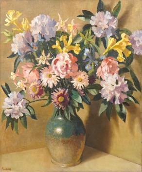Lot 1712 , John Thomas Young Gilroy (1898-1985), Still life of flowers in a vase, signed, details verso, oil on canvas, 75 x 62cm