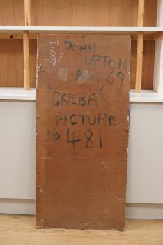 Lot 1727 , John Upton (1933-2005), Mid century abstract oil on canvas board, Portrait of a woman amongst flowers, inscribed and dated Aug, '69, unframed, 130 x 60cm