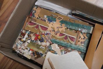 Lot 511 , Juvenile Drama, large collection of reproduction printed and and/or hand coloured toy theatre characters, backgrounds, etc. in Seven boxes