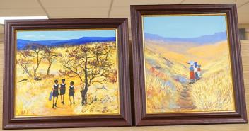 Lot 711 , Katherine Ambrose (South African), African village scenes with figures, each signed, two oils on canvas, 39 x 34cm