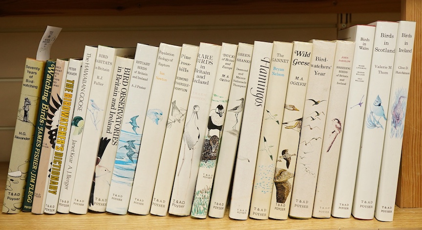 ° Kear, Janet and Duplaix-Hall, Nicole - Flamingoes... coloured plates and other illus; publisher;s cloth and d/wrapper. T and AD Poyser, 1975; Hutchinson, Clive D - Birds in Ireland. num. illu; publisher's cloth and d/wrapper. T and AD Poyser, 1994; together with other Poyser monographs in this series; first editions in d/wrappers. 1973-94 (21 vols)