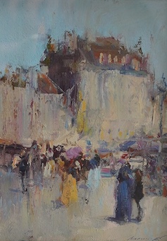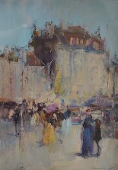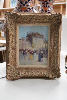 Lot 1777 , Ken Moroney (1914-2018), French Street scene with figures, signed, Impressionist oil on canvas, 19 x 14cm