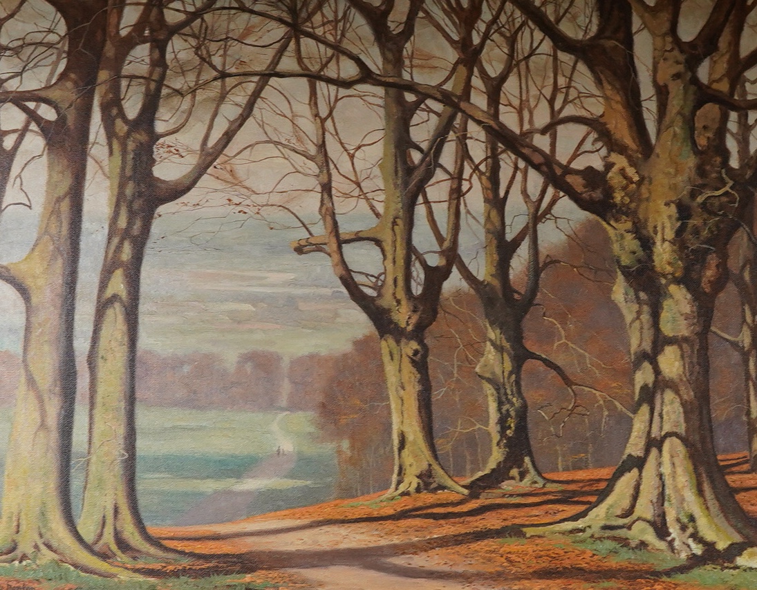 Kenneth Denton (1932-2024), 'Winter landscape with path, signed, oil on board, 59 x 73cm