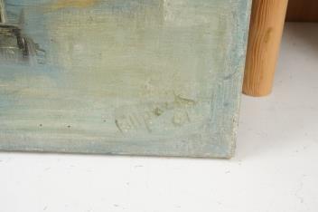 Lot 1726 , Killpack, Mid century abstract study, signed and dated '61, oil on canvas, John Skelton label verso, unframed, 55 x 75cm