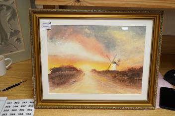 Lot 735 , L. Rogers, landscape with windmill, signed, together with another, two watercolours, largest 29 x 49cm