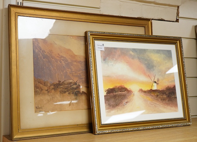 L. Rogers, landscape with windmill, signed, together with another, two watercolours, largest 29 x 49cm