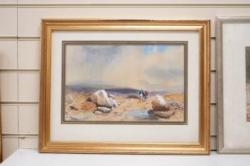 Lot 1726 , Late 19th / early 20th century, two figures in a landscape, possibly Queen Victoria and John Brown, unsigned, inscribed William Leech verso, watercolour, 23 x 35cm