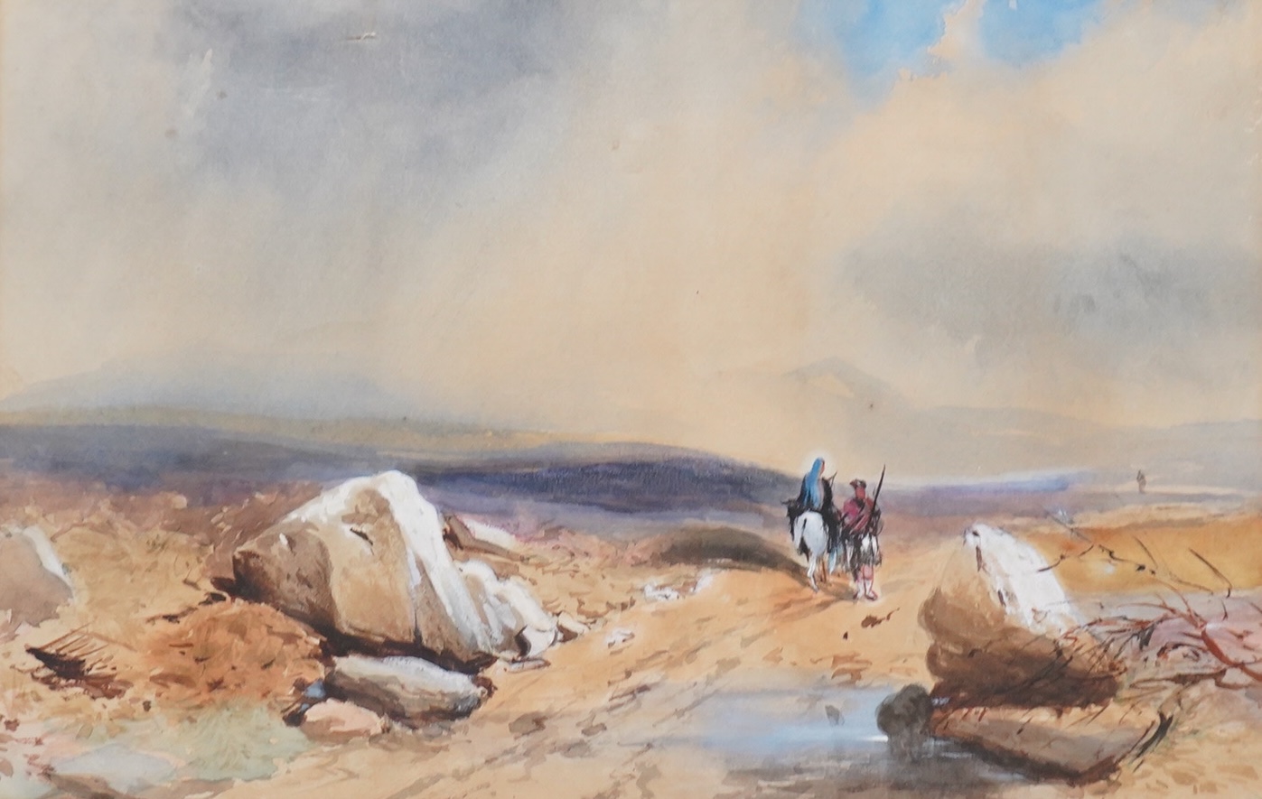 Late 19th / early 20th century, two figures in a landscape, possibly Queen Victoria and John Brown, unsigned, inscribed William Leech verso, watercolour, 23 x 35cm