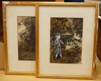 Late 19th century, English School, Rocky coastal scenes with figures, pair of watercolours, 23 x 16cm
