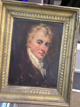 Lot 718 , Late Regency School, portrait of a young gentleman, indistinctly inscribed verso, oil on canvas, gilt framed, 24 x 17cm
