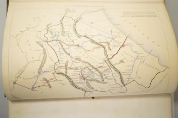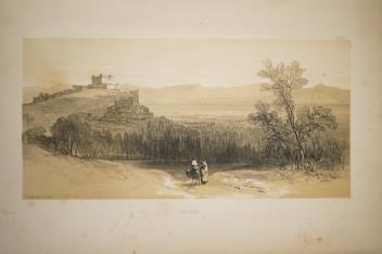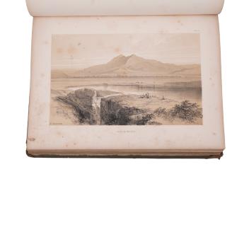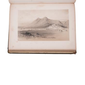 Lot 1173 , Lear, Edward - Illustrated Excursions in Italy, 4to, half title, title-page with lithographed vignette, full-page map hand-coloured in outline, 30 sepia-tinted lithographed plates, 4pp. of sheet music bound at rear, orig