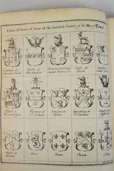 ° Lewis, John - The History and Antiquities, as well as Ecclesiastical as Civil, of the Isle of Tenet, in Kent. the second edition, with additions. title printed in red and black, with pictorial vignette (and 2 others elsewhere), mezzotint portrait frontis., 19 plates (1 folded), a map and 2 plans (1 folded) and a folded pedigree and a folded chart; includes the (Appendix) - A Collectiion of Papers, Records &c. referr'd to ... old calf (distressed), panelled spine, gilt arms of the Signet Library copy on covers, 4to. printed for the Author, and for Joseph Ames, and Peter Thompson ... 1736