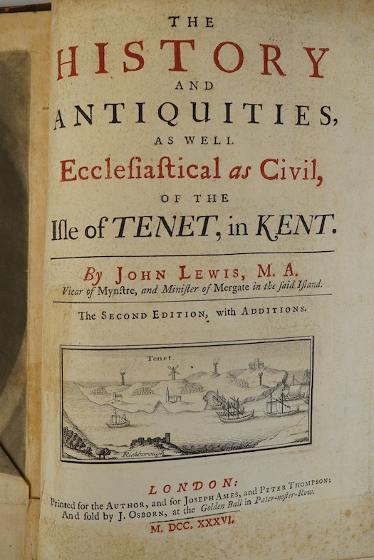 Lot 1019 , Lewis, John - The History and Antiquities, as well as Ecclesiastical as Civil, of the Isle of Tenet, in Kent.
