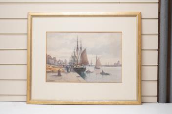 Lot 1720 , Louis Etienne Timmermans (1846-1910), Harbour scene, signed lower left, watercolour, 31 x 47cm