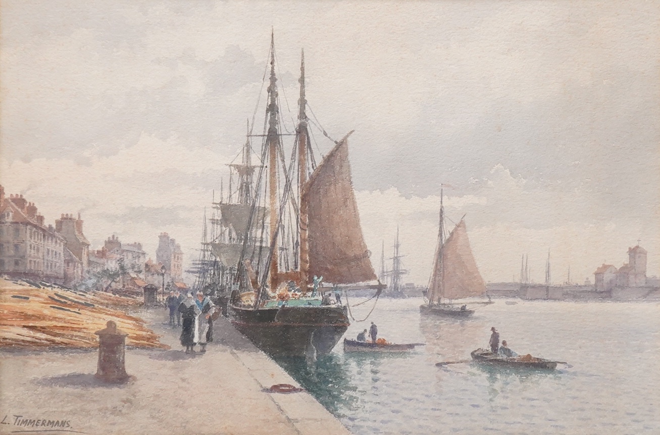 Louis Etienne Timmermans (1846-1910), Harbour scene, signed lower left, watercolour, 31 x 47cm