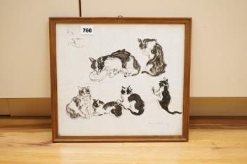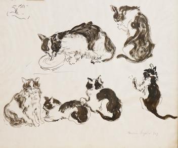 Lot 760 , M. Lufieri, Studies of cats, signed, pen and ink on paper, 28 x 31cm
