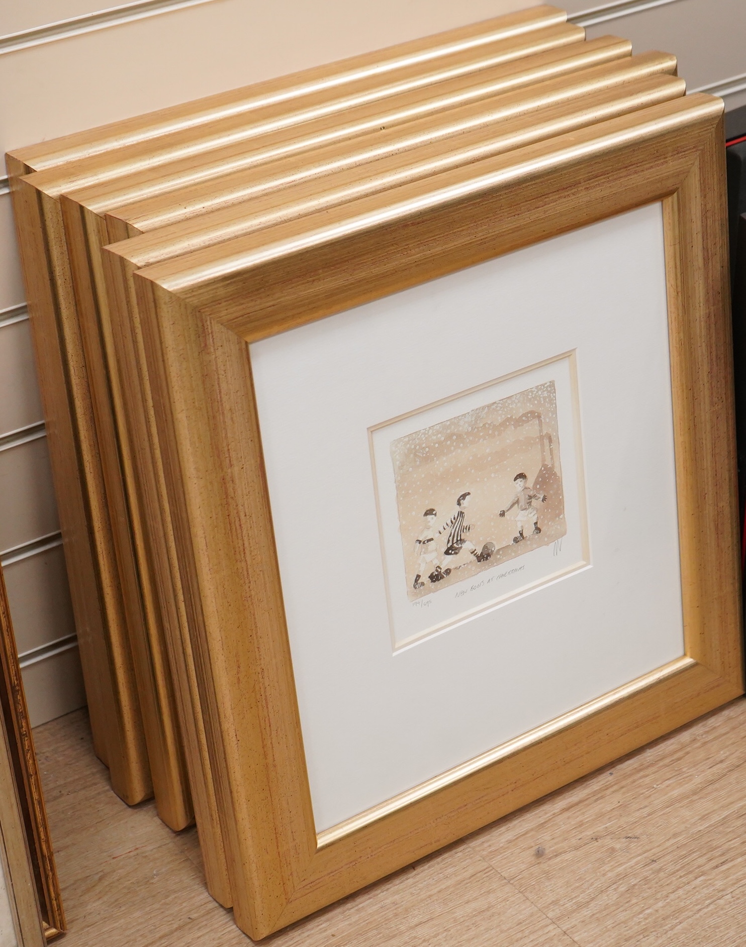Mackenzie Thorpe (b.1956), Game of life series, comprising, Mum can I have an ice cream, They wont play with me, New Boots, He's coming home, Over the moon, The Captain, signed in pencil, each limited edition of 695, a set of six contemporary colour prints, with COA, 16 x 16.5cm