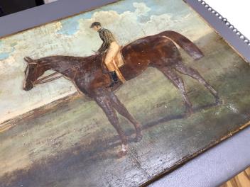 Lot 714 , Manner of John Frederick Herring Sr (1795-1865), jockey on horseback, oil on canvas, unframed, 31 x 41cm