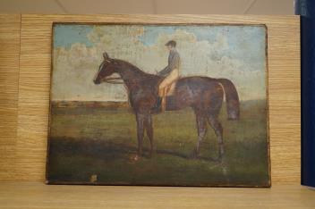 Manner of John Frederick Herring Sr (1795-1865), jockey on horseback, oil on canvas, unframed, 31 x 41cm