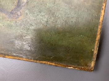 Poor to fair condition only: near-oval patch of missing oil lower-left; dirty overall; some craquelure and flakes to paint. Indistinctly inscribed lower right, image 11.