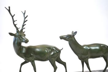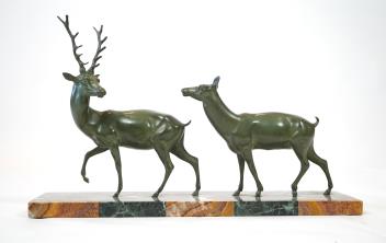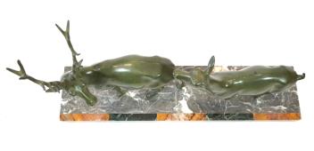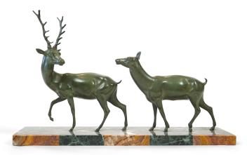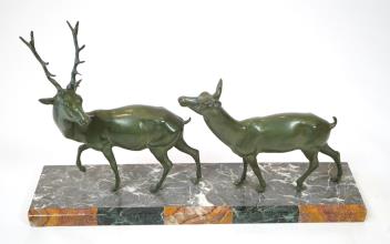 Lot 137 , Manner of Louis-Albert Carvin, French 1875-1951, An Art Deco bronze group of a stag and doe
