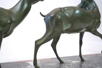 Manner of Louis-Albert Carvin, French 1875-1951, An Art Deco bronze group of a stag and doe