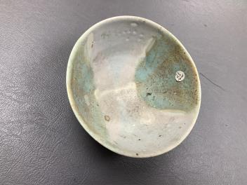Lot 415 , Mary White (1926-2013), a thinly-potted bowl with turquoise and pink glaze effects, monogrammed, 9cm diameter