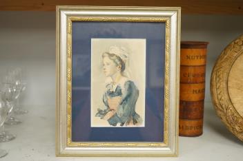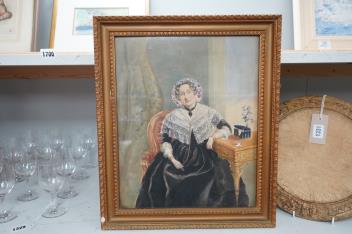 Lot 1699 , Mid Victorian School, Portrait of a seated lady in an interior, unsigned, watercolour, together with two other watercolours, portraits of women, largest 36 x 29cm