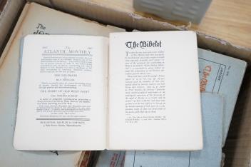 ° Moult, Thomas. Voices in Poetry and Prose... volume one (January to June 1919) pp.320 original blue cloth. Voices press. 8vo; Voices in Poetry and Prose... Vol.V, No.I, No.II, No.III (x2), No. IV (x2) (6). original paper wrappers. Chapman and Hall Jan.21 - Autumn 21. ; Voices - Number one, Number Two (2) original paper wrappers. January 19191 - February 1919. ; The Bibelot, 56 vols (1907 -1913). orig. printed paper rappers. some duplicates, various dates. with others. (78)