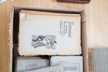 Voices - light wear/staining, marbled endpaper removed, some spotting. paper wrappers - some wear and occasional loss to spines. Bibelot - mostly clean , a few vols soiled others with some light wear. others include The Jongleur, 8 vols (1927-1932) original printed paper wrappers. one duplicate - various dates.; New Verse, 2 vols (1934, 1937) original printed paper wrappers. ; Life and Letters, 3 vols (1928-1930) original printed paper wrappers.