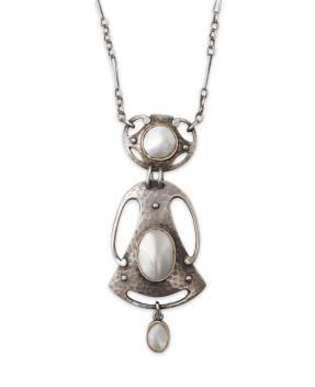 Lot 450 , Murrle, Bennett & Co., an Arts & Crafts silver and mother of pearl pendant, circa 1900