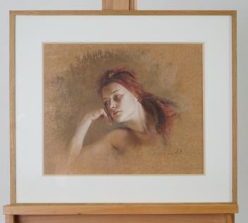 a head and shoulders study of a young woman,
