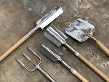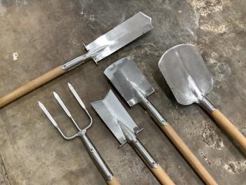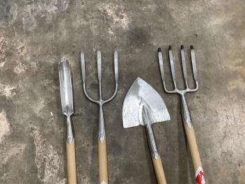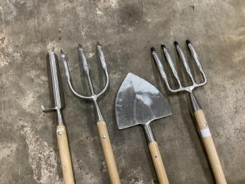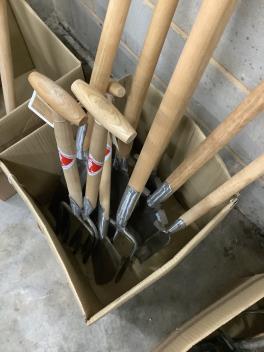 Lot 1079 , Nine unused Sneeboer, The Netherlands, garden tools, including; a shovel, a weeding fork, a ladies spade, a dandelion weeder, a potato fork, a transplanting spade, a draining spade, a strawberry spade, and a digging fork