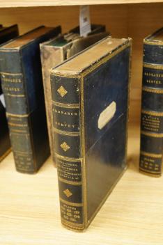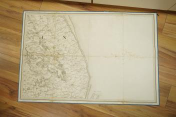 Ordnance Survey maps of Lincolnshire, Rutlandshire, N. Huntingdonshire and W. Norfolk &c., comprising of a set of eight engraved maps mounted on linen and edged with blue cotton, including sheet no.s; 64, 65, 69, 70, 83, 84, 85, and 86, engraved by Benjamin Baker at the Ordnance Map Office in the Tower, and published by Major Colby, dated 1824, in a leather slip case with lid and gilt tooling, disguised as a book