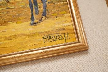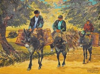 Lot 1701 , Paolo Fabbro (Italian, b.1941), Harvesters on donkeys, signed and dated ‘78, oil on canvas, 29 x 39cm