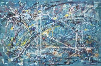 Lot 1742 , Paul Mann (20th. C), untitled abstract composition, signed, oil on canvas, 59 x 90cm
