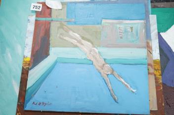 Lot 752 , Paul W. Ozere (20th. C), a collection of eighteen oil paintings to include a diving figure, figural studies and abstract views, all unframed