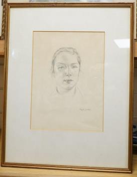 Lot 760 , Phyllis Dodd (British, 1899-1995) Study of a woman, pencil sketch, signed to lower right, within mount 27.5 x 20.5cm, overall 47 x 37cm.