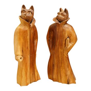Lot 467 , Pierre Decorse (b.1953), a pair of carved hardwood cats and a novelty lamp modelled as a stack of books, with shade, largest overall 36cm high