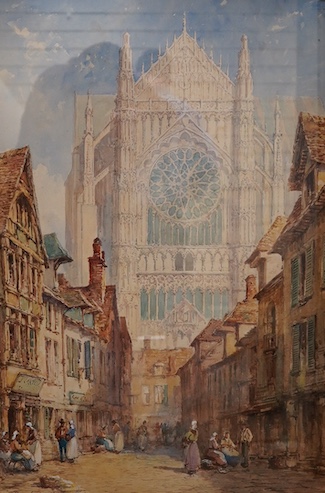 Pierre Le Boeuff (French, fl.1899-1920), View to Beauvais Cathedral, signed, watercolour, ornate gilt framed, 74 x 48cm