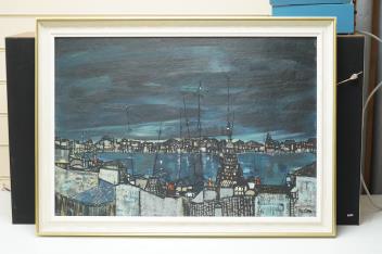 Lot 1743 , Preston Goddard (1928-2009), harbour view at twilight, signed, oil on artists board, 45 x 66cm