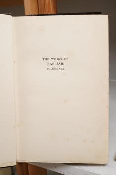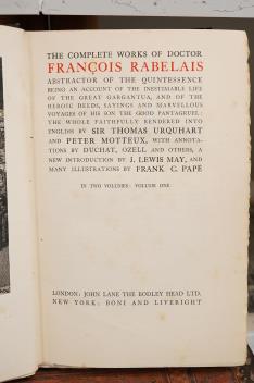 ° Rabelais, Francois. Complete Works illustrated by Franck. C Pape. In Two volumes, limited edition 97/4300 signed by the illustrator. publisher's cloth gilt. Bodley Head. 1927