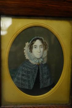 Lot 2700 , Regency School, Portrait miniature of a lady wearing a bonnet and lace shawl, oval oil on ivory, housed in original frame, 10.5 x 8cm CITES Submission reference 1GKQWZA5