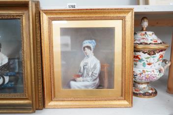 Lot 1702 , Regency School, Portraits of seated ladies, unsigned, two watercolours on card, largest 26 x 21cm, each gilt framed