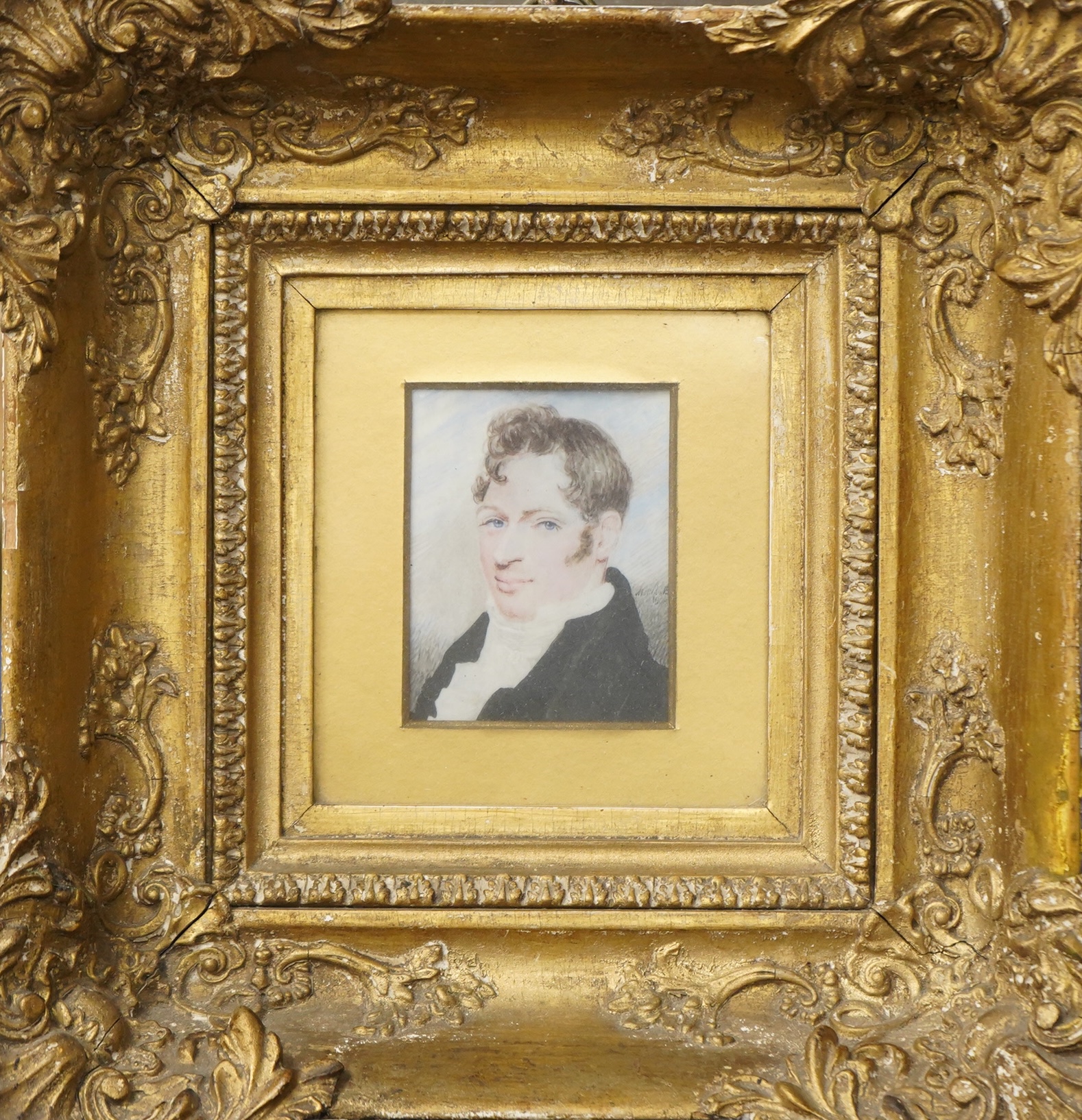 Regency school, portrait miniature of a gentleman, possibly Josh Crampton, indistinctly signed and dated 1808, oil on ivory, housed in an ornate gilt frame, 7 x 5cm