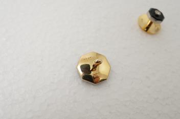 Retailed by Mappin & Webb, an Art Deco onyx and diamond dress set, circa 1920, comprising: four shirt studs and a single collar stud, each of octagonal outline in polished onyx, and centring on a circular-cut diamond, diameters 7-12mm, each stamped 18CT & PT, combined gross weight approximately 6.5 grams, fitted case stamped Mappin & Webb