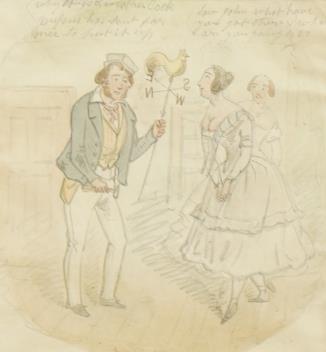 Lot 770 , Robert Cruikshank (1789-1856), humorous figural scene, signed and inscribed, watercolour and pencil, 15 x 14cm
